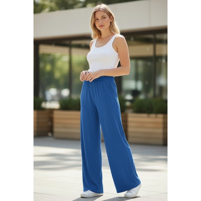 Zamonaviy va qulay palazzo shimlar — har kunlik kiyish, sayr va dam olish uchun ajoyib tanlov. Erkin fason qomatga chiroyli tushadi, oyoqlarni uzunroq ko‘rsatadi va qulaylik beradi. Rezinkali hamda bog‘ichli bel qismi oson moslanadi. Yengil va yoqimli mato issiq ob-havo uchun mos.